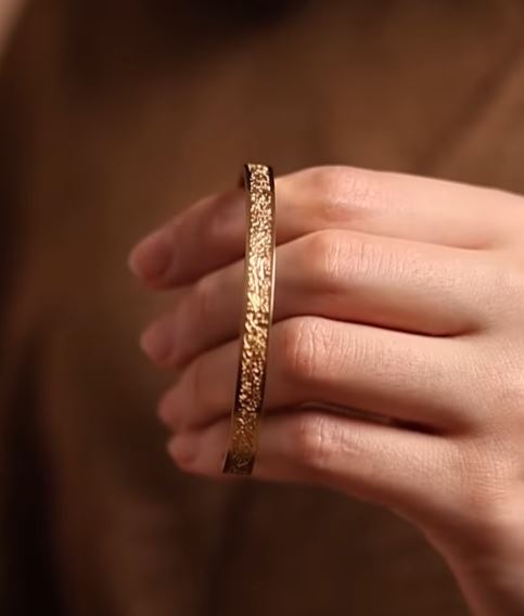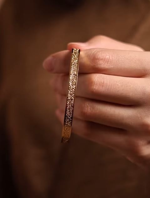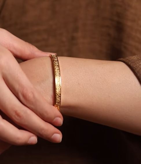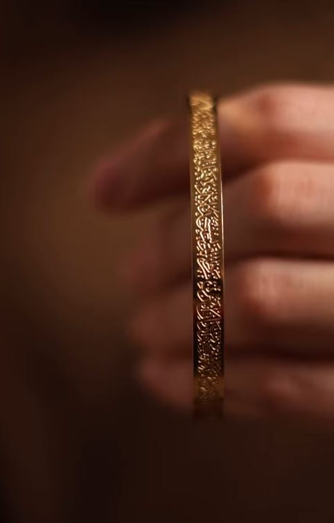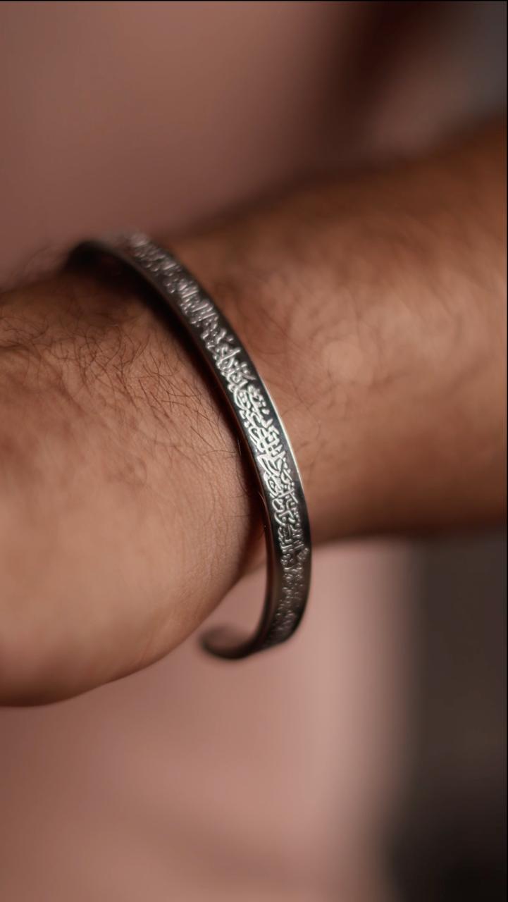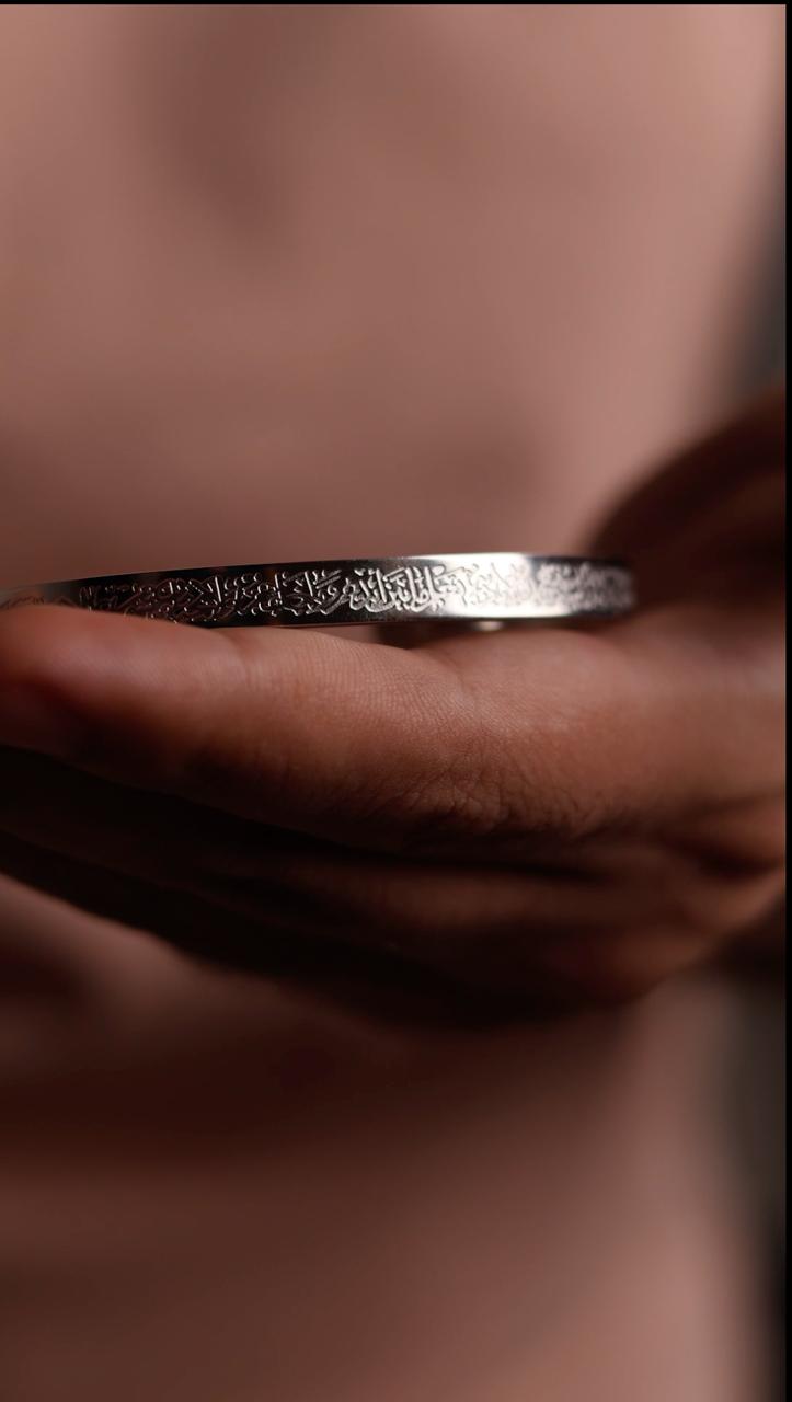 نقدملك أسورة آية الكرسي بتصميم يجمع بين الفخامة والروحانية، قطعة بتدمج الجمال بالمعنى وتحمل في طيّاتها البركة والحماية.