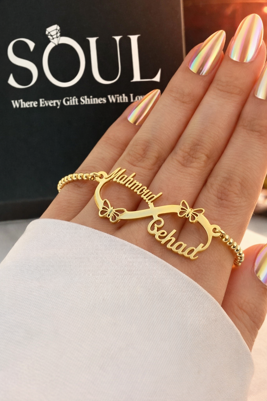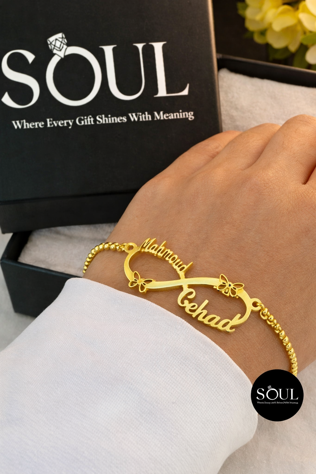 🖋️ حفر مخصص لأسمين (أو أكتر حسب التصميم) عشان يخلي كل قطعة فريدة ومليانة مشاعر.