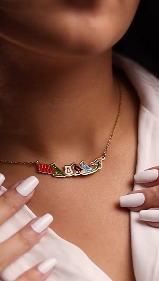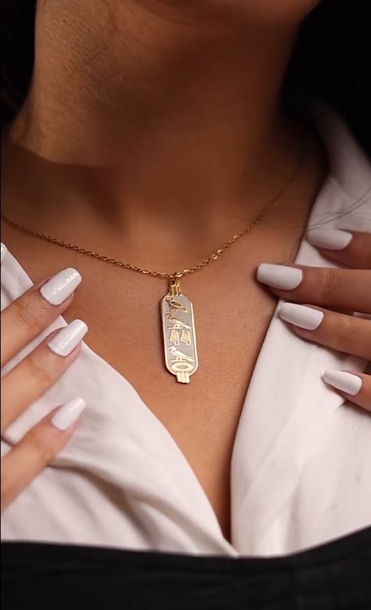 اكتشف فخامة الماضي مع سلسلتك أو ميداليتك الفرعونية المحفور عليها اسمك بالهيروغليفي — لغة الحضارة والتاريخ ✨